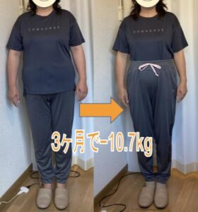 HOME レビュー Mさん 50代 女性 Mさん 50代 女性 会社員 Mさん 50代 女性 たった3ヶ月で・・・ 体重(-10.2㎏) 74.1㎏→63.4㎏ ウエスト(-11㎝) 93.5㎝→82.5㎝ お腹周り(-9.3㎝) 107.1㎝→97.8㎝